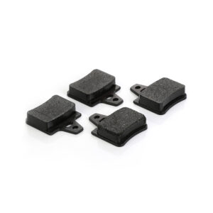 Found in disc brake systems, brake pads are a flat piece of steel with a thick friction material layer on one side.
